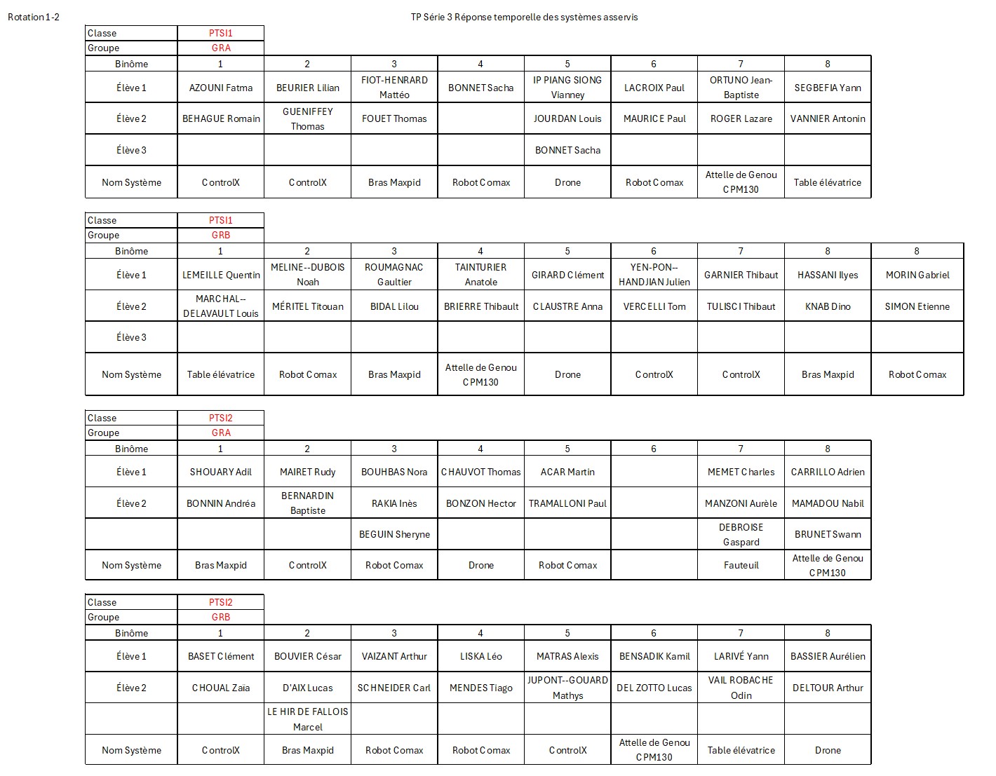 SEQ Travaux Dirigés SEQ Dessin industriel SEQ Colles Devoirs Maison TP Série1 Analyse des systèmes TP Série1bis Étude technologique TP Série2 Modélisation des systèmes asservis TP Série3 Performances temporelles des SLCI TP Série4 Paramétrage cinématique TP Série5 Performances cinématiques Informatique Python